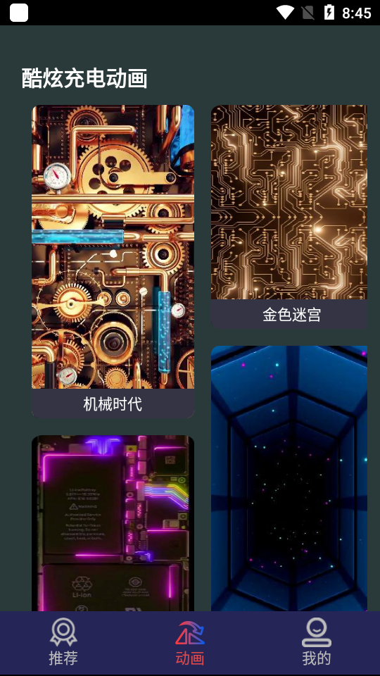第三:进入动态效果面板点击【充电动画】选项。