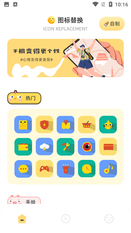 能够进行随心挑选个性的相关热门手绘图标样式,同时也能够进行专属自定义的进行更换相关喜好的图标内容。