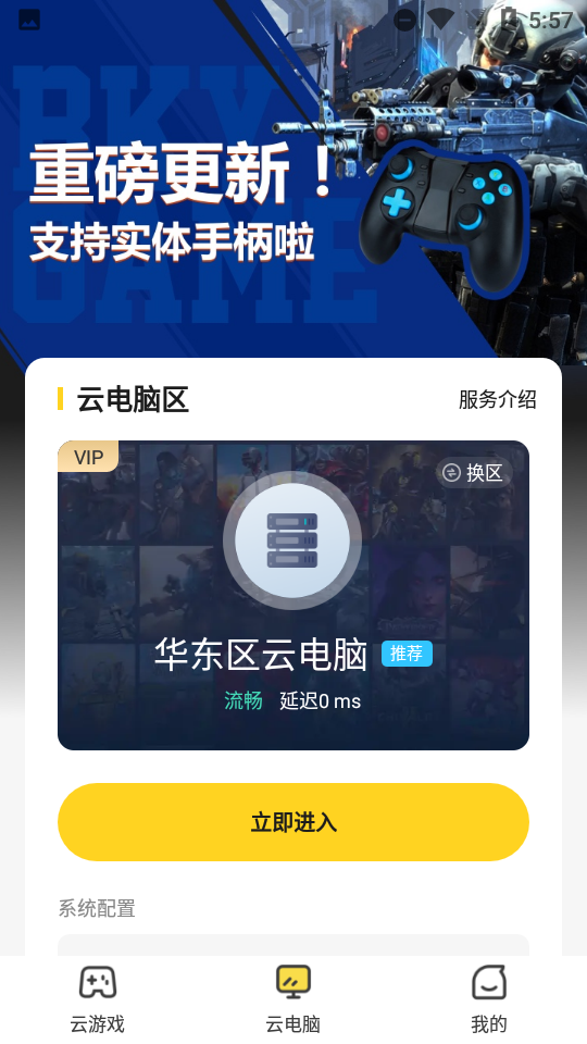 达龙云电脑,是一款云游戏应用软件,为个人用户提供基于云计算的游戏高配云电脑服务,享受电竞馆般的云端高配电脑配置!无配置要求,低端安卓机可以畅玩云端PC游戏和3A大作海量云游戏,让你菜鸡变王者!