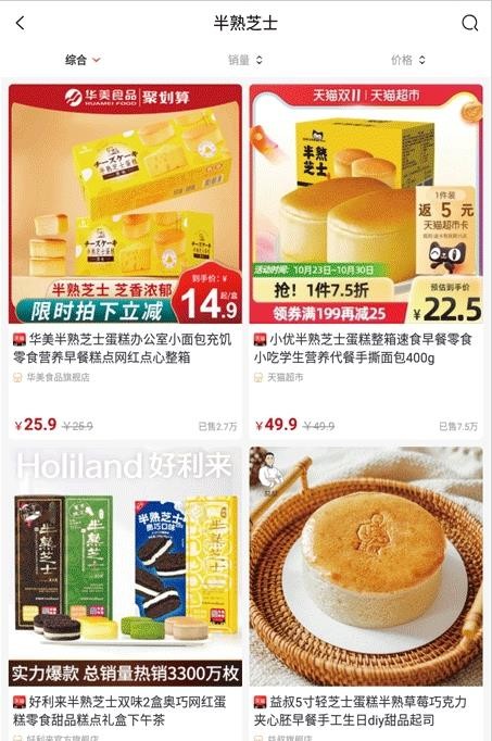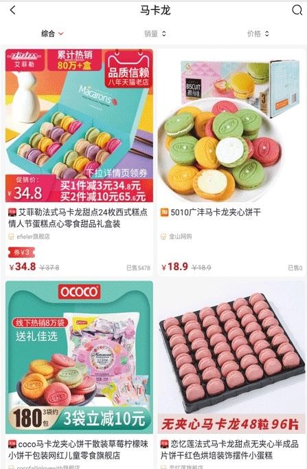 搜索功能多样化,可按宝贝、店铺等进行搜索。