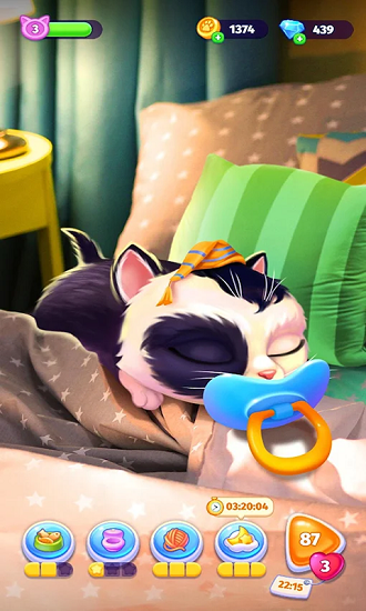 2、满足想养宠物的心愿,一起做游戏,撸猫,喂食洗澡。