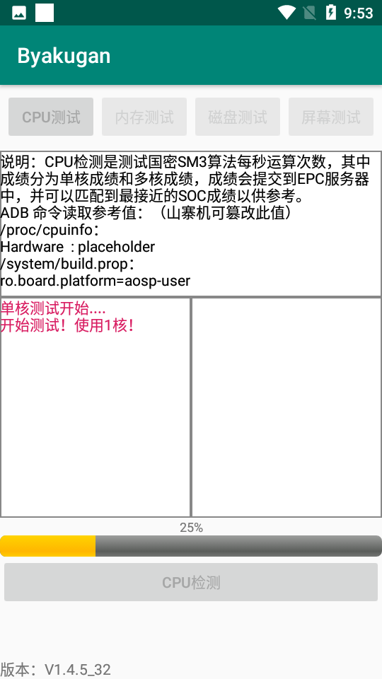CPU测试:通过测试国密SM3算法每秒运算次数,分别测试单核与多核成绩,并将成绩提交到数据库,匹配成绩相近的SOC以供参考。