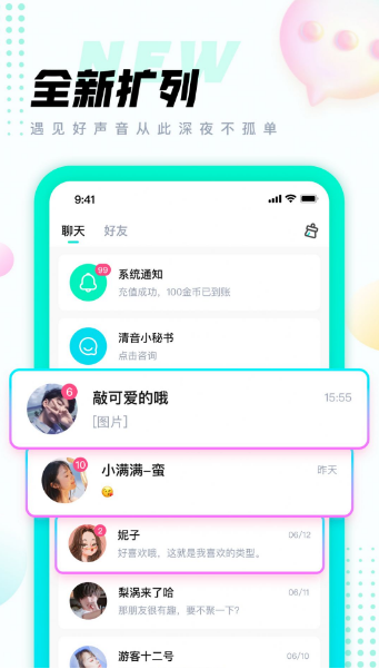 清音语音app是一款非常独特的手机语音交友软件,这款软件中的各种交友模式主要是以语音为主的,用户们可以在这款软件中通过自己的声音来进行更加愉悦的交友,而且这款软件中的用户是非常的多的,用户们可以在这款软件中快速的匹配到聊天的对象,非常的简单。你还是一个人在努力的适应这个纷繁浩荡的世界么?清音让社交变得轻松,清音,为了每一个孤独的人都能有人陪伴。