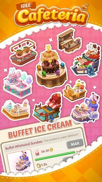 1.卡通游戏风格,有趣的餐厅经营玩法,惊喜不断;