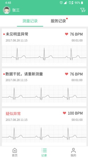 5、点击进入记录中心,选择监测记录并查看记录详细数据
