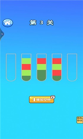 3、玩家要将颜色相同的水放到一个杯子中,才能完成挑战。