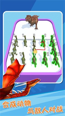 恐龙合并战争是一款趣味合成主题的休闲3D益智闯关手机游戏,恐龙合并战争这款游戏玩法轻松易上手,同时还有许多霸气凶猛的恐龙角色可以合成,等级越高的恐龙,它的战斗能力越强。这些不同的恐龙都是有着不一样的属性值的,所以说一定要尽可能的去搜集不一样的恐龙。在恐龙合并战争游戏中,消耗各种小恐龙去合成最终的大恐龙,才能有机会去战胜敌人,取得更多的游戏胜利。感兴趣的朋友赶紧下载体验!