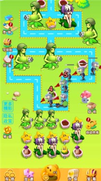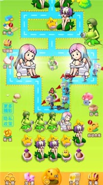 1.将植物进行全新的设置,优化玩法,每一种植物都是萌系的少女,加速了战斗过程。