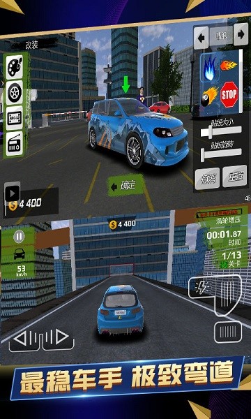 b、参与并成为顶级短跑赛车手。炫酷的驾驶效果带来很多有趣和刺激的冒险。
