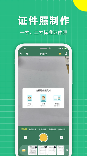 一款高效扫描软件,快速扫描文档.文字识别导出.证件照制作.老照片修复等强大功能,自动切除杂乱背景,生成标准PDF/JPG扫描件,复制分享一气呵成。
