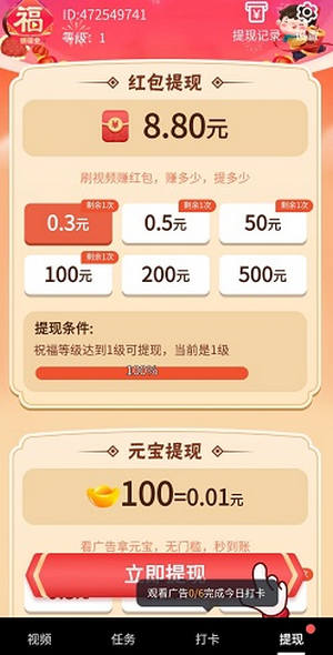 《五福刷刷刷》赚钱app,每天刷刷视频就能赚钱,能提现