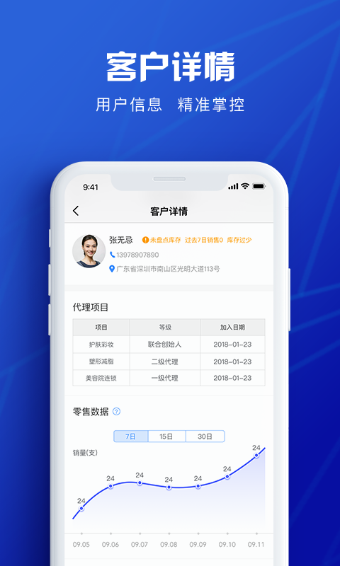 6、线上轻松管理客户、商品库存等信息,简单方便。