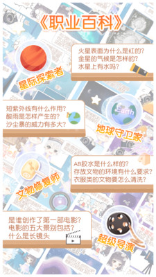 1.职业趣味体验:体验各类职业,了解专业知识,帮助用户培养职业规划意识,提前定个小梦想 :D