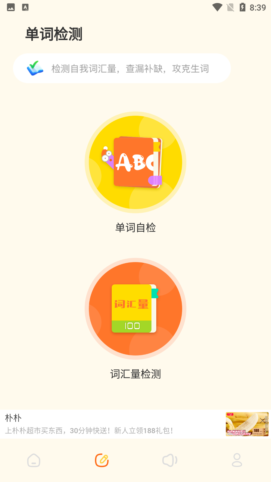 多种自检形式,如单词自检、词汇量检测、速听记忆等。