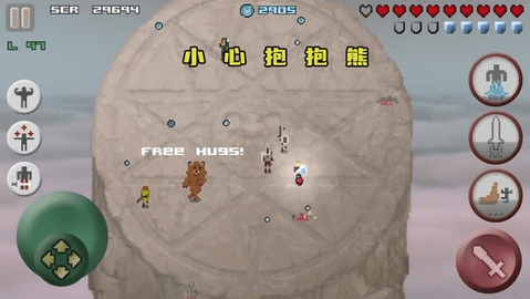3,新场景,每个场景都是用复古像素艺术风格创造的,在不同的场景中扮演不同的角色,,几个简单的组合就可以冒险,游戏画面轮盘操作。