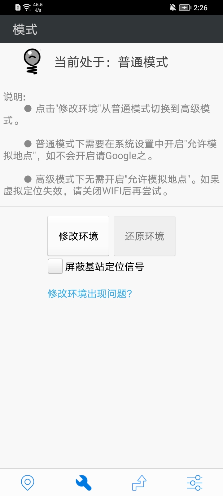 2.1 点击底部中间的扳手图标,进入「模式」页面,点击「修改环境」按钮;