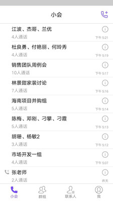 会议快捷模式:从通话记录或群组可直接发起会议,发起会议前可删减或添加成员。