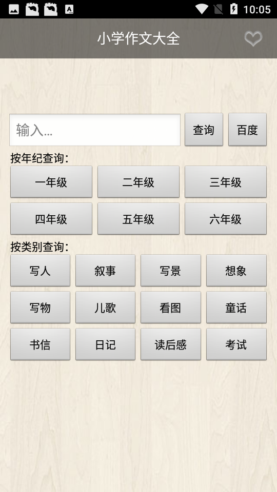 小学作文大全为专门为小学生定制的作文类辅导软件。作文大全,为小朋友的写作提供参考,提供优秀作文素材,本地数据包含2W+的小学作文!