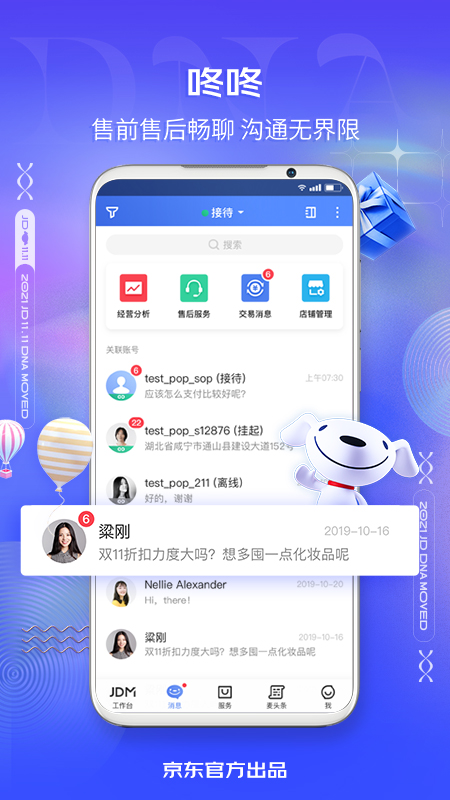 一键打开更多京东官方工具,一键登录IM咚咚客户端;