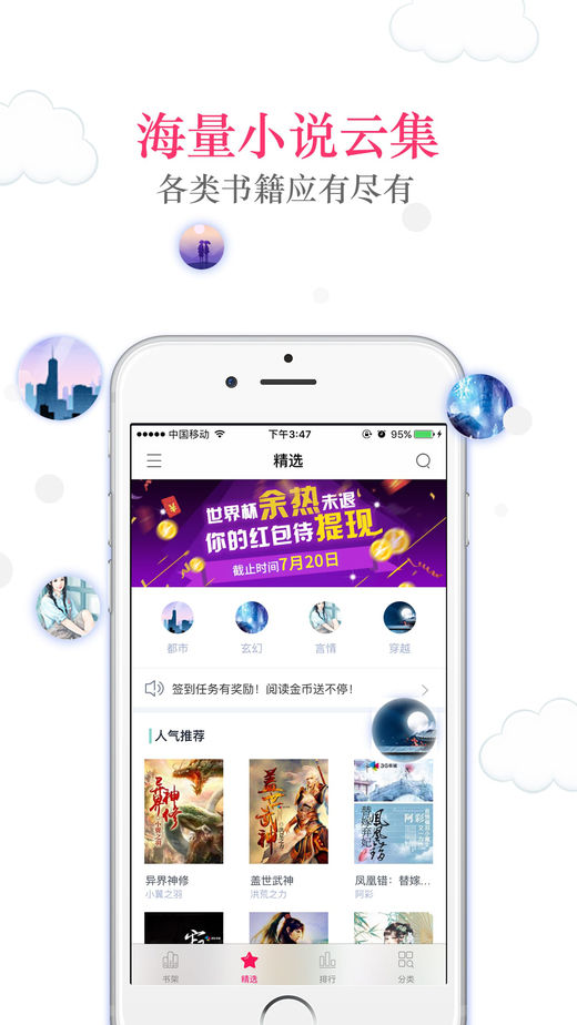 小说内容覆盖了总裁豪门小说、言情小说、穿越架空小说、玄幻小说、青春校园小说、修仙小说、悬疑小说、同人小说、名著、出版、各种类型,精排版的epub图书、你想要的全都有。看书的同时更有现金、金币奖励送不停!