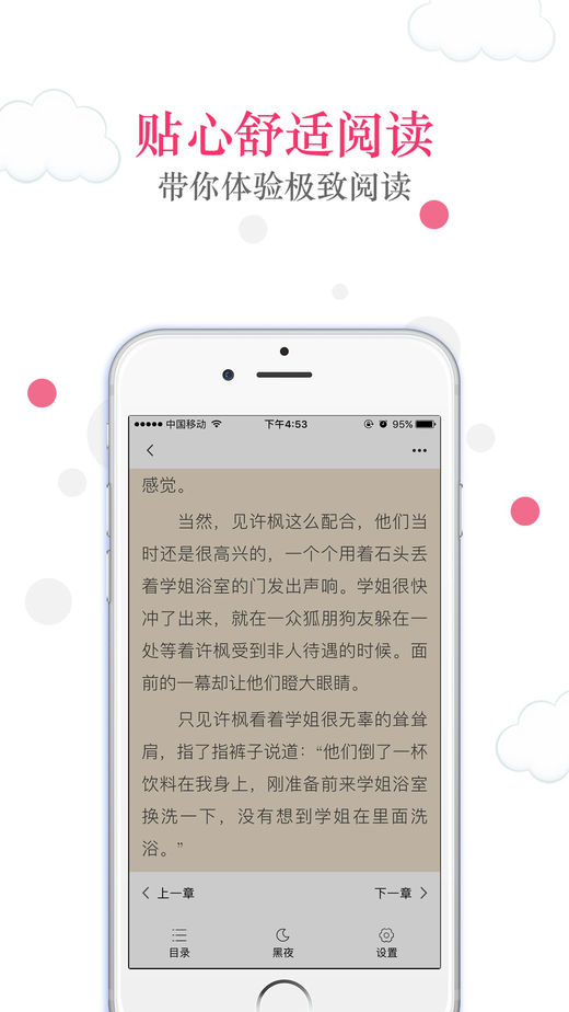 背景颜色、字体、字号任你挑;自定义排版、书签功能、夜间模式等特色功能让你畅享阅读趣味!