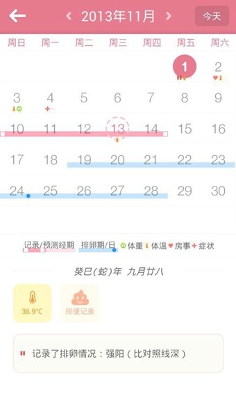 在这里你可以记录你的月经时间、异常症状、体重、体温等等,每一次简单的记录,智能系统都会为你计算出有针对性的建议。随着你记录的越多,智能系统将会不断学习、不断完善,推出更加贴切,更加准确的建议。