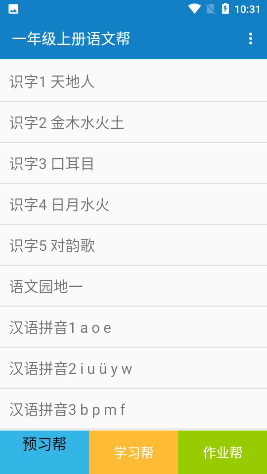 与一年级语文课程完全同步进行学习,一年级上册语文帮app采用音频教学,在没有老师和家长的情况下也可以进行自学,在家中轻松学习。能够跟我们的课程内容进行全面的同步,我们在课堂上没有掌握的内容,课后还可以进行自主的复习,全面加深,能够提高我们的语言学习成绩。