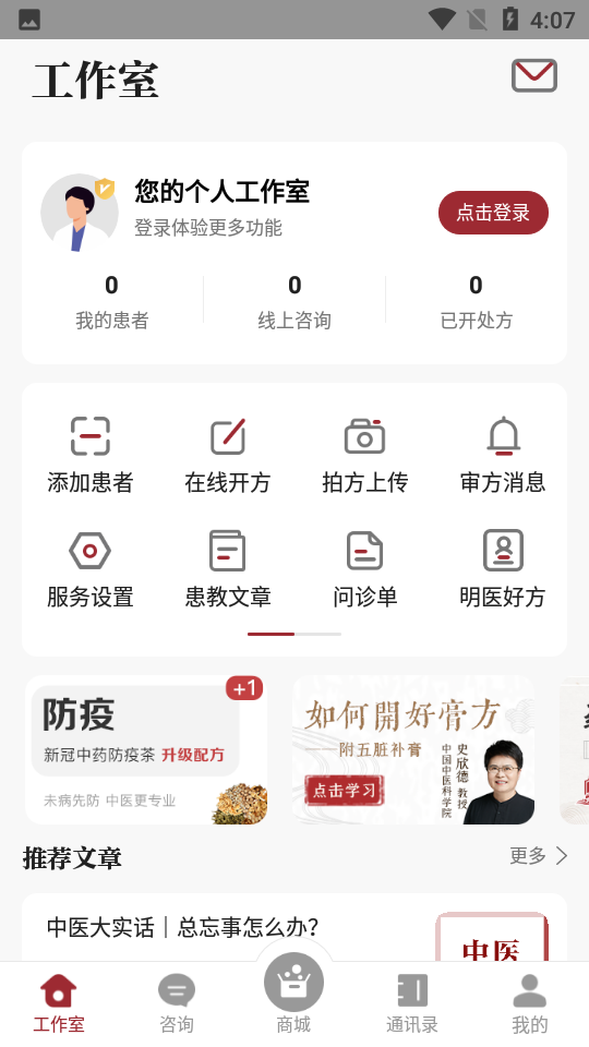 中医师可随时随地开电子/图片处方,图文语音实时进行随访咨询,便捷管理患者、自动收录病历档案。【复诊、调方、随访】在线一键完成,全方位诊疗,增加医师阳光收入。