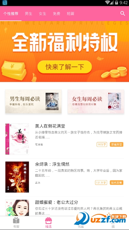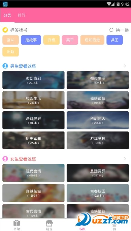 3、全面的小说类型:言情、穿越、玄幻、都市、青春、校园、总裁、耽美、同人、官场、励志、武侠、科幻、历史、军事应有尽有;