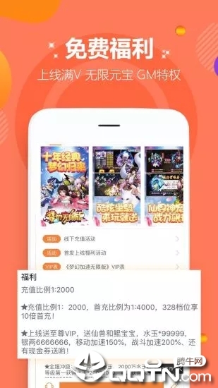 9917玩手游盒子是一款拥有海量资源的盒子app,盒子内近千款游戏任你选,手游玩家必备的手游神器,提供大量热门手游,为你带来免费首充、无限元宝、满级vip、海量礼包、GM特权、充值3折等多样福利,让手游更轻松,盒子内还增加了返利申请、小号交易,让你可以一键获得超值返利,一键小号换现金,游戏精彩不断、惊喜不断。