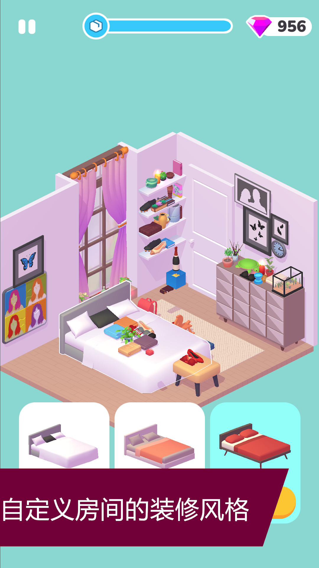 1、每一个需要改造的房屋都有一个固定的框架,你需要利用各种道具在这个基础上进行翻新。