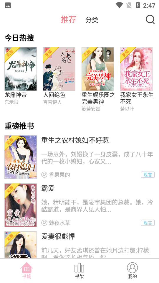 1.诸多主编力荐的优质小说,并且都是当下大量用户畅读的资源