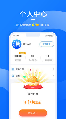 猎文小说是一款集玄幻、武侠、言情、校园、都市等众多小说类型为一体的免费小说阅读APP,拥有海量优质的免费小说资源。这里猎文小说,秒拿0.6,这个活动虽然可以秒提,但是有个很大的缺点,提现需要填写名和证号,介意的忽略吧。良好的使用与阅读体验,这里有你喜欢的小说应有尽有,可以随时随地畅快阅读,热门的好书精选,摆脱书荒,感兴趣的话就来下载吧。