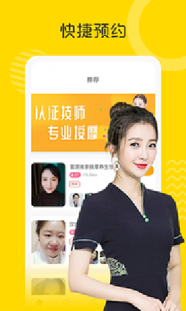 约按摩是一款非常出色的手机服务类软件只有符合自己的力度才算是有效的按摩,所有技师均实名认证、健康认证、资质证书认证等,都可以在线快速预约,杜绝虚假按摩技师,及时解决各种生活问题。也有专业级的即时提供上门按摩服务,轻松下单支持在线沟通,覆盖全国300多个城市,给你更为贴心的服务!下载约按摩app试一试吧!