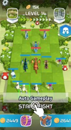 2、玩家在这里的主要目标就是合成英雄和龙 ,让实力得到快速的提升,击败其他敌人,收获拳拳到肉的爽快动作打击收割!