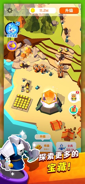 打野我贼溜让玩家们可以在小岛上提供相当丰富的内容。建立自己的领地,通过不断的探索为未知区域感受不一样的精彩内容。你还可以招募更多的内容。游戏中你也可以直接选择放置玩法,在这片奇幻的岛屿上,举起手中武器去击败野外的邪恶怪物吧!你将从最基础的营地开始,逐步扩充士兵数量,提升士兵的速度和力量,最终建成你的打野帝国!
