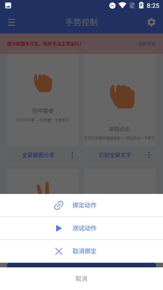 3、然后可通过不同的手势可以触发不同的动作,比如:隔空手势截图、隔空手势点击手机屏幕、隔空手势实现翻页功能、隔空滑动屏幕内容等。