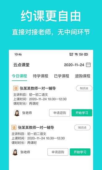 云点私塾app最新版是一款致力于为中小学生提供全学科的学习辅导软件,名师在线上课一对一进行辅导大大提高学生学习效率。教师和学生的上课时间和地点自主可控,学生对教师的选择比较透明,可以了解教师详情再选择自己心仪的教师,每一天都有线上直播课程错过的学生也可以看直播回放。打破了学生和家长选择教师局限性,云点堂微课为没有能够在课堂上完全掌握相关知识的学生,随时提供缺失的教学知识 云点私塾功能,学生还可以选择自己喜欢的老师进行学习这样能让他更好的掌握所学的科目。有需要的朋友快来下载云点私塾app吧。