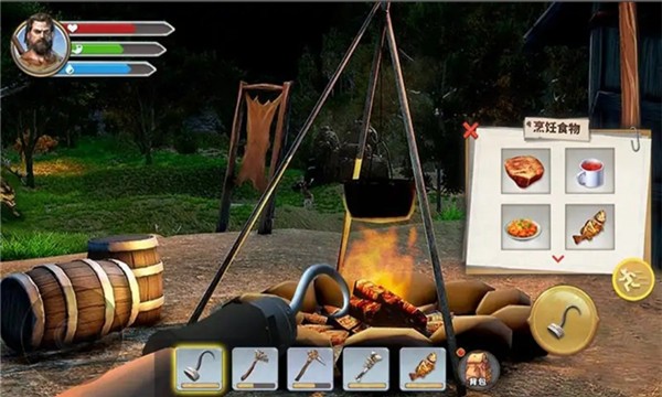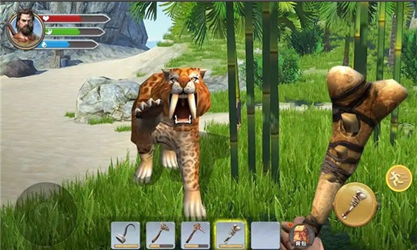1、在这个森林和海边进行各种探索,狩猎,战斗,都是为了生存。