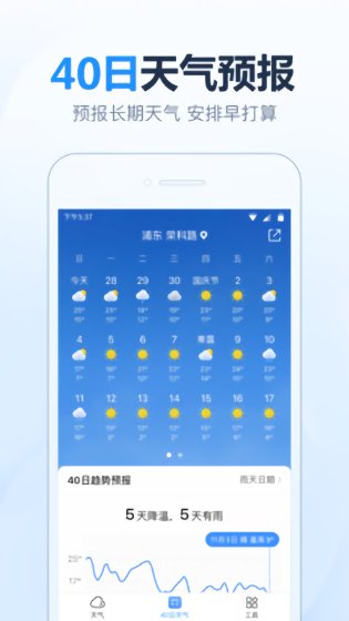 1.最远可以预计未来40天内的天气预报,让你能够对自己以后的出行提前计划。