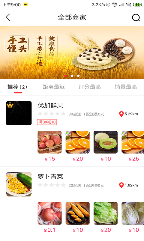 【店家详情】可查看商品以及店家的评分信息,通过评级的星星数可了解店家的服务质量。