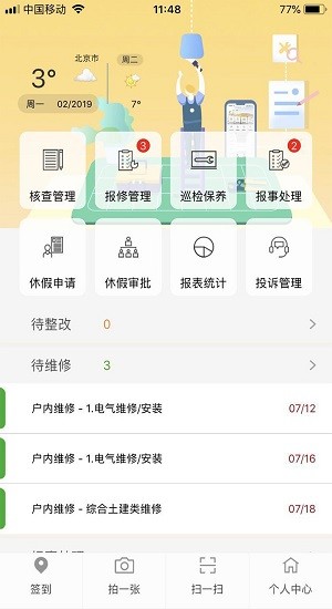 2、可以及时接受小区业主的报事报修信息,线上除了和派发工作任务给工作人员;