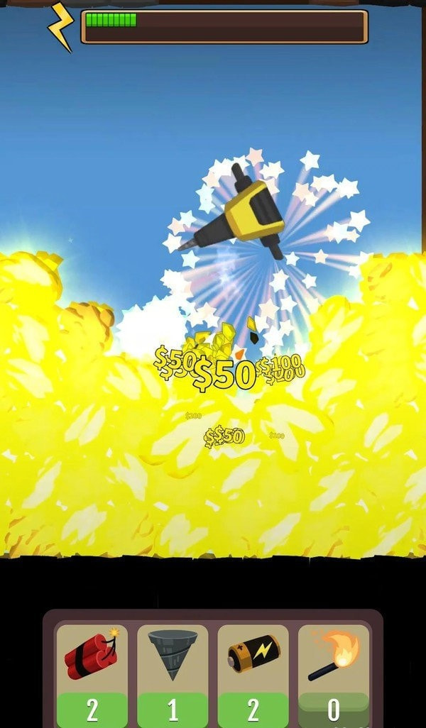 挖宝时间软件简介挖宝时间是一款非常精彩的休闲益智安卓游戏非常简单轻松,千万不要抓起炸弹等物品,而且玩家随时想玩就玩,配合轻快的背景音乐,消磨你的无聊时间。宝石是非常难得的,可以帮助你抵扣很多的金币消耗,另外解锁更加高级的采矿机,你就能撬得动更加坚固的岩石,这样就能探索更多的地方了。
