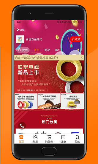 主要分类包括:五金工具、紧固件、门窗五金、机电轴承、焊接设备、电工电料、照明电器、厨卫洁具、水暖器材、给排水、消防安防、油漆化工、装潢材料、劳保日杂