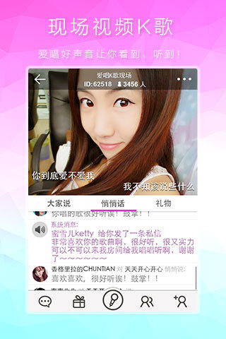 爱唱是让你可以随时随地在手机上唱歌的软件,软件内有海量歌曲等你来翻唱,还有智能歌曲评分系统,使用它用户可以听好友演唱,可以点歌,还可以自己k歌,录制自己的作品,还可以进行别人现场房间听演艺,更可以与好友聊天,嗓音不用出众,只要简单操作,你的作品就不再简单。分享到社区,你也能够拥有自己的粉丝群。赶快来免费下载体验吧!