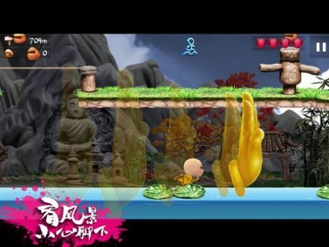 以让小和尚跳跃起来,而在空中长按屏幕就可以让他打开伞滑翔。本作在操作上并不困难,随意点击屏