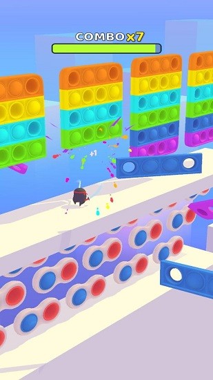 2、快速的拿起武器去进行切砍,只要将赛道中所有的物体成功切片就行了。