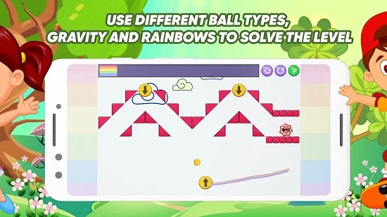 物理彩虹球这款游戏没有什么操作难度,轻松就能上手,玩家可以随时随地来这里打发闲暇时光,而且还有更多的游戏内容等着玩家来解锁,有趣又好玩,非常益智又休闲,在游戏中玩家可以使用弹球进行多种操作,游戏画风卡通有趣,玩法多样简单,同时游戏中还拥有丰富的关卡等待玩家来挑战,玩起来也是蛮轻松的,完全没有任何的难度。