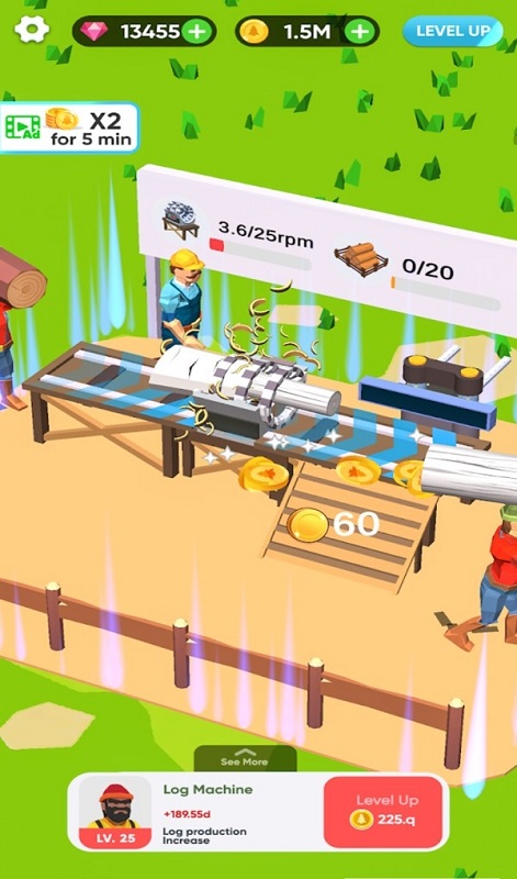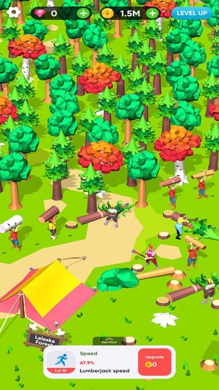 空闲木材厂大亨,趣味木材厂经营手游,游戏的背景是一片繁盛的林园,游戏中玩家需要从零开始在这里制作一个木材加工厂,招募工人技术人员在这里进行放置招工生产,游戏的玩法非常的有趣,玩家们可以雇佣工人来帮助自己运营,最终成功的将自己的工厂扩张,感兴趣的小伙伴们快来下载体验吧!