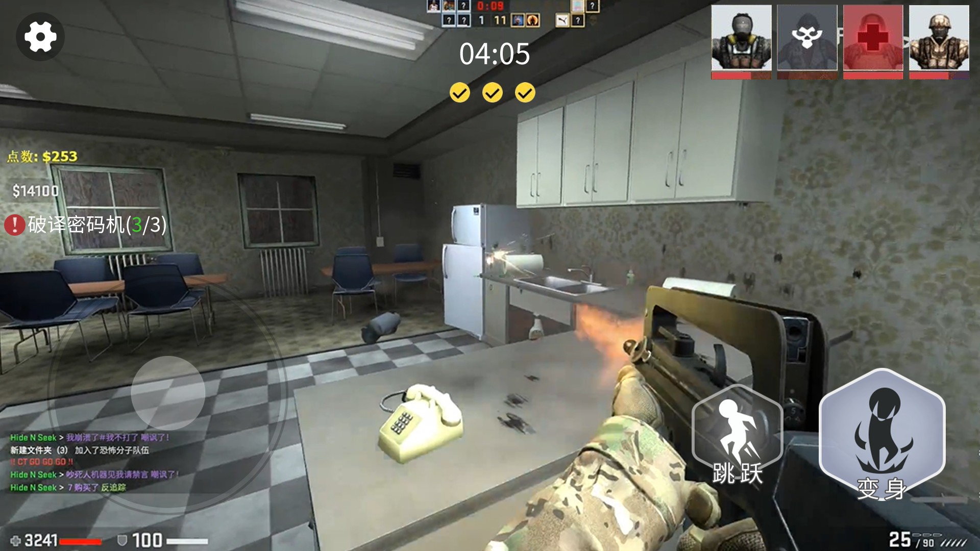 合理躲猫猫游戏这是一款支持多人联机模式的枪战射击冒险游戏。这款合理躲猫猫游戏拥有很多场景,CSGO同款玩法,吃鸡?小黑子!我听到了好大一声!系统支持多人联机模式,你要把他放置在相对让人觉得可以的地方来让你的队手进行寻找,他会利用手枪来进行不断的射击,但是手枪里面的子弹是有限的,你只要躲藏在他子弹耗尽的情况下才能取得游戏的胜利。喜欢射击类型游戏的朋友还在犹豫什么呢?快来下载吧!